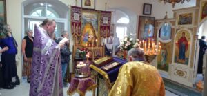 В завершении богослужения, при пении монашеского хора « Кресту Твоему поклоняемся Владыко, и Святое Воскресение Твое поем и славим», духовенство, монашествующие и прихожане поклонились Честному Кресту Господню, после чего настоятель храма протоиерей Вадим поздравил верующих с праздником и благословил всех.